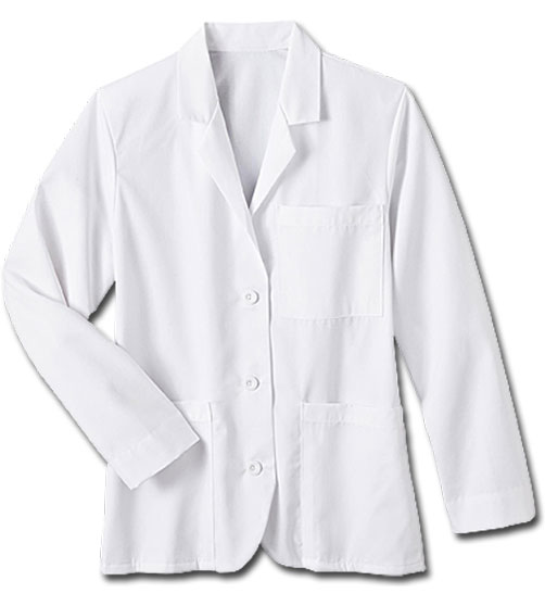 White Swan META 738 iPad® Ladies' Consultation Lab Coat - 28": - 7 pockets; 2 lower outside iPad® pockets, 1 hidden cell pocket, 1 breast pocket and 3 inside pockets - Front darts - 3 button closure