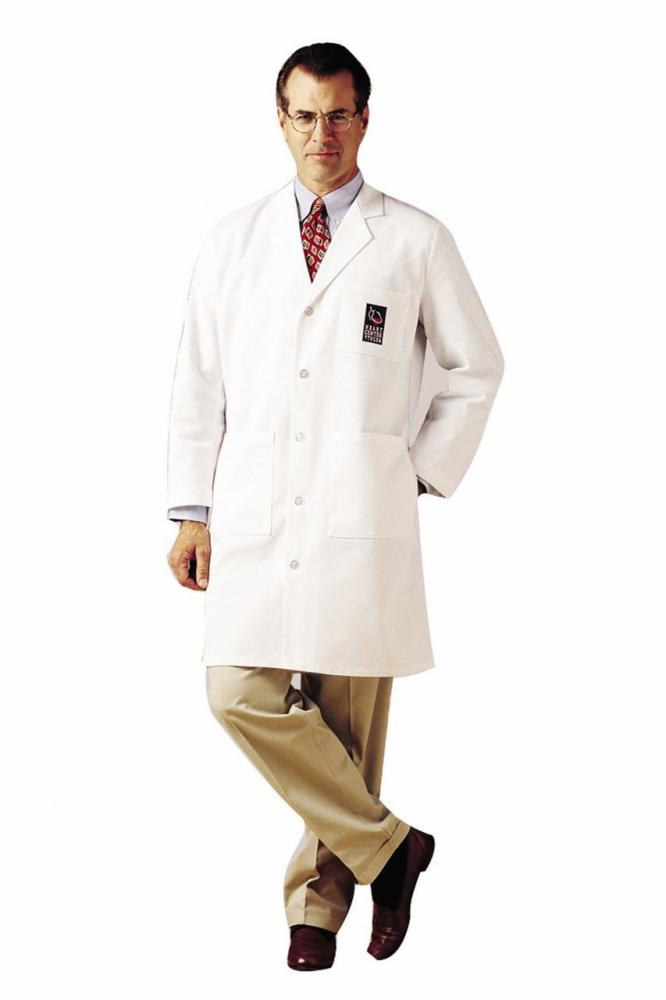 Full one piece straight back, breast pocket, and two patch pockets with side hand access into trouser pockets. Five button closure. 40" length