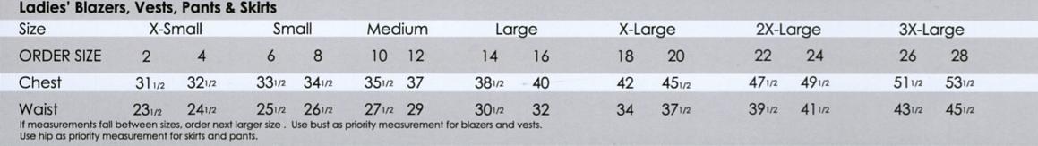 Cherokee women’s size chart:
