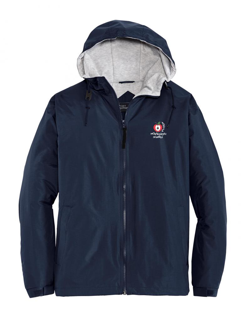 A jacket as spirited as your team. With sporty styling, the nylon shell repels water while the sweatshirt fleece lining in the hood and body provides comfort and warmth.