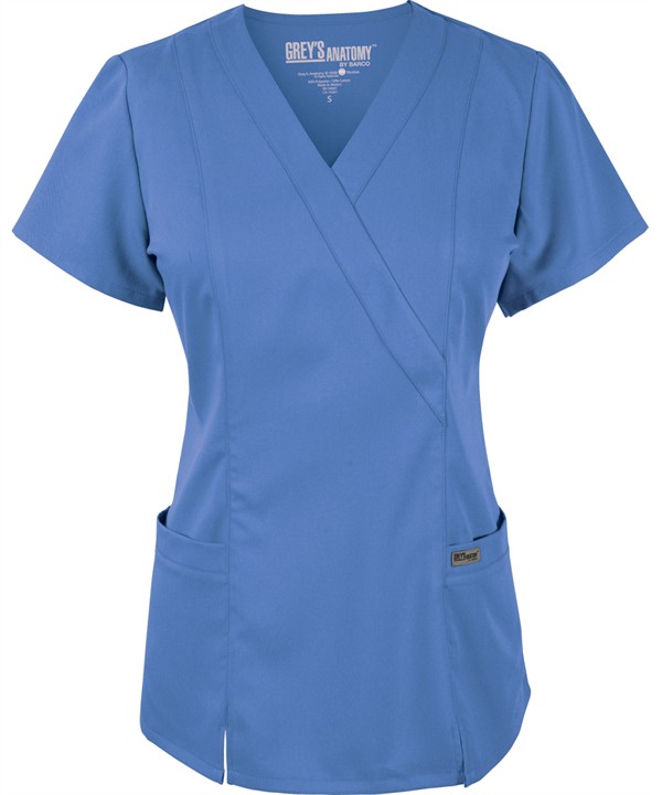 Product Details Inspired by your favorite television series, this Grey's Anatomy 41101 scrub top features a signature mock wrap styling with a modern fit. The princess seams, front slits, and elastic back provide you with added comfort and flexibility. For storage, you'll find two front pockets for all your essentials. Barco arclux™ 77/23 poly/rayon fabric features moisture wicking with soil release. Grey's Anatomy © ABC Studios All Rights Reserved.