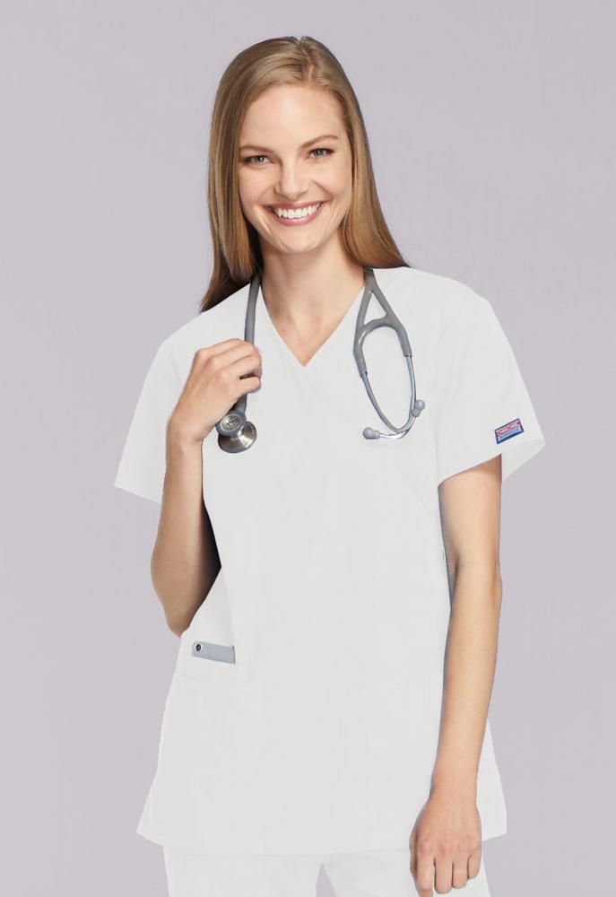 Great roomy fit and a superb price. I really like this scrub top and will probably get a few more as I build up my "wardrobe" of scrubs for a new job. I really wish they offered this with two bottom pocketsMARY F.