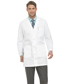 Designed to secure your essentials, this lab coat offers three front pockets, two inside pockets and side hand access. Sewn-down back belt pleats adds a nice finishing detail. Available in 65% Polyester/35% Cotton White Micro-sanded Twill (WWSC). Medium length 37½" (size 42).