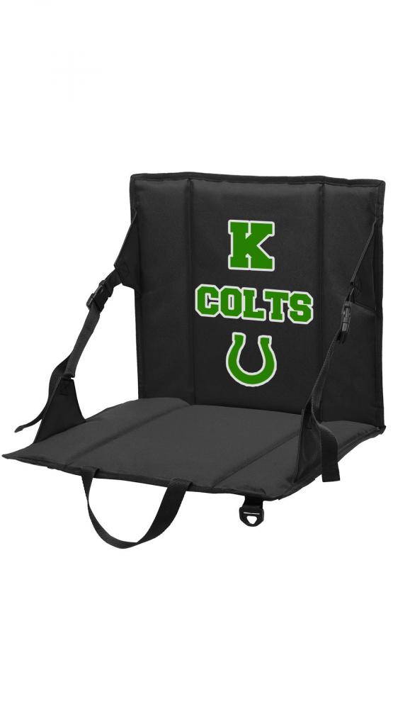 Cheer on the Kinnelon teams and securely carry essentials. This portable padded seat adjusts for comfort and has a zippered pocket.