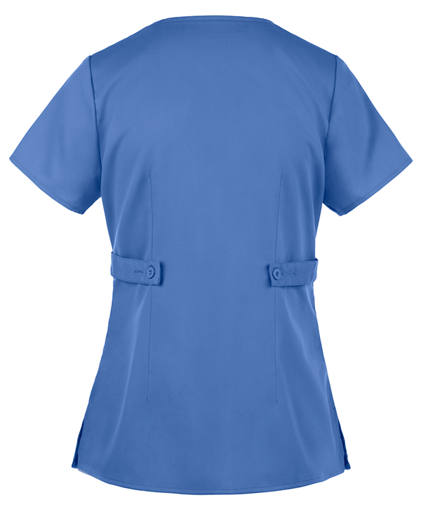 The Grey's Anatomy 4153 Women's Modern Fit Mock Wrap scrub top combines effortless style with the most durable, long-lasting fabric. For easy access to your medical tools, there are two front pockets and an additional hidden pen pocket. The empire seam and adjustable back tabs provide more detail and utility. The side slits included allow for ease of movement around the workplace. This top is tagless inside and features a woven label on the front pocket. Barco arclux™ 77/23 poly/rayon fabric features moisture wicking with soil release. Grey's Anatomy © ABC Studios. All Rights Reserved.