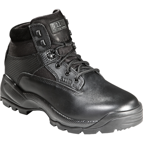 A favorite of law enforcement and special tactics teams throughout the world, the 5.11 6" ATAC Boot offers superior performance and durability while maintaining a professional profile. Accelerated side zip access allows quick on and off, minimizing prep time and eliminating the need to lace up or down. The toe is crafted from high-shine full grain polished leather, while the nylon upper offers rugged resilience and breathability that stands up to tough patrol environments. The moisture wicking lining and dual density foam cushioning offer support and comfort, while the oil-resistant no-squeak outsole ensures stealth and stability. The 6" ATAC Boot also incorporates our revolutionary 5.11 Shock Mitigation System® to provide maximum compression and rebound, increasing your speed, stamina, and traction on any surface.