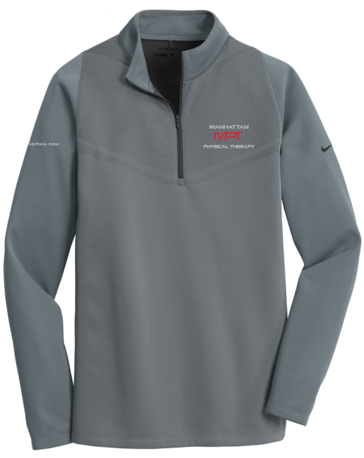 For lightweight, allover warmth and temperature regulation, this cover-up excels with Therma-FIT fabric. The chevron design across the chest provides a striking pop of color detail. Distinctive contrast color at the neck and zipper, plus a brushed interior makes this versatile layering piece an everyday essential. Details include a reverse coil zip-through collar, open cuffs and an open hem. The contrast Swoosh design trademark is embroidered on the upper left sleeve. Made of 10.2-ounce, 100% polyester Therma-FIT fabric.