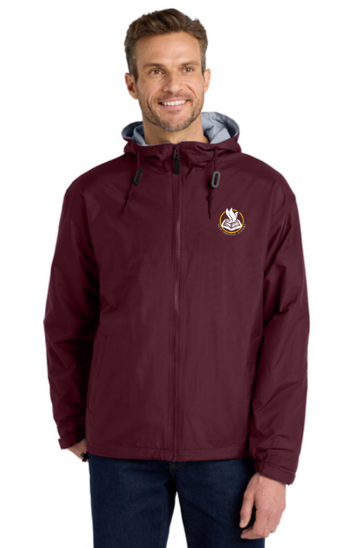 With sporty styling, the nylon shell repels water while the sweatshirt fleece lining provides comfort and warmth.