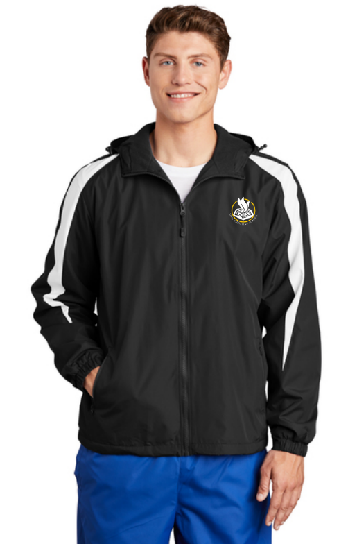 Versatile and comfortable, this wind- and water-resistant jacket has athletic colorblocking and includes a hood to shield you from unexpected wind and rain.